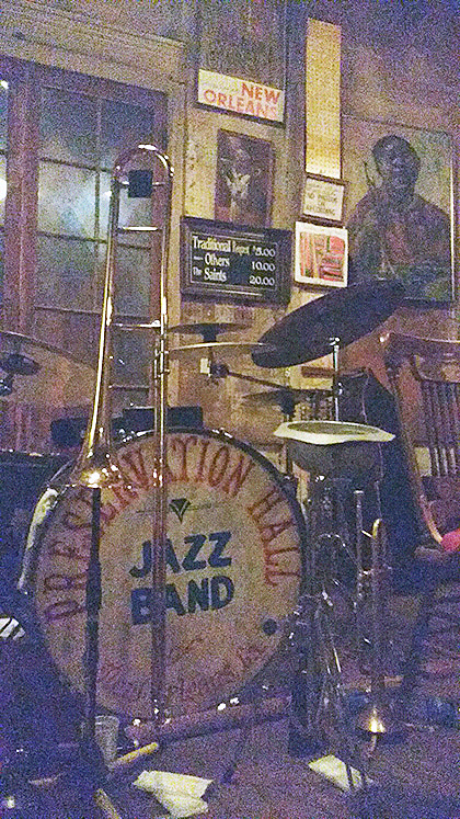 Subject: Nola RoNca!“Salve, turma!Logo de cara, o #685 entregando Preservation Hall na bandeja e revirando boas memórias por aqui.Em 2017 surgiu a chance de visitar um amigo que estava estudando em Pensacola, na Flórida. O aeroporto mais próximo de lá era justamente o Louis Armstrong Airport. O nome do local já me bagunçou… Assim que eu botei o nariz pra fora e vi (e ouvi) onde eu tava.. música misturada com aquele cheiro pornográfico de álcool e praline na rua.. O bote é fatal.Conclusão: passei dois dias lá, fui pra Pensacola e depois voltei pra passar mais uma semana lá. Nessa semana, consegui me espremer na fila pra testemunhar Preservation Hall. Infelizmente, não é permitido filmar a apresentação, então só tenho guardadas algumas fotos do palco e o ticket do evento, devidamente encaminhados aqui.Também juntei uma foto do balcão da Peaches Records, que resiste firme por lá, e um registro da categoria de base tirando som no bucket. Impressiona a facilidade com que se encontra música transbordando na rua por lá.Valeu por ter resgatado esse episódio aqui no HD! Abraços!”Esdras