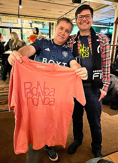 Subject: Leeds v Fulham (roNcando)“Salve, Simpatia!Neste exato momento aqui em Leeds, Giuliano (ex-Brasília, Varsóvia, Nova Zelândia e agora em Londres) e yours truly celebrando a recém-formada amizade.Giuliano veio a Leeds pra torcer pelo Fulham no Leeds United 1×0 Fulham de hoje.É aTRIPA se conectando! Se liga aí no attachment.Beijos + abraços,”Marcelo “Caipirinha”